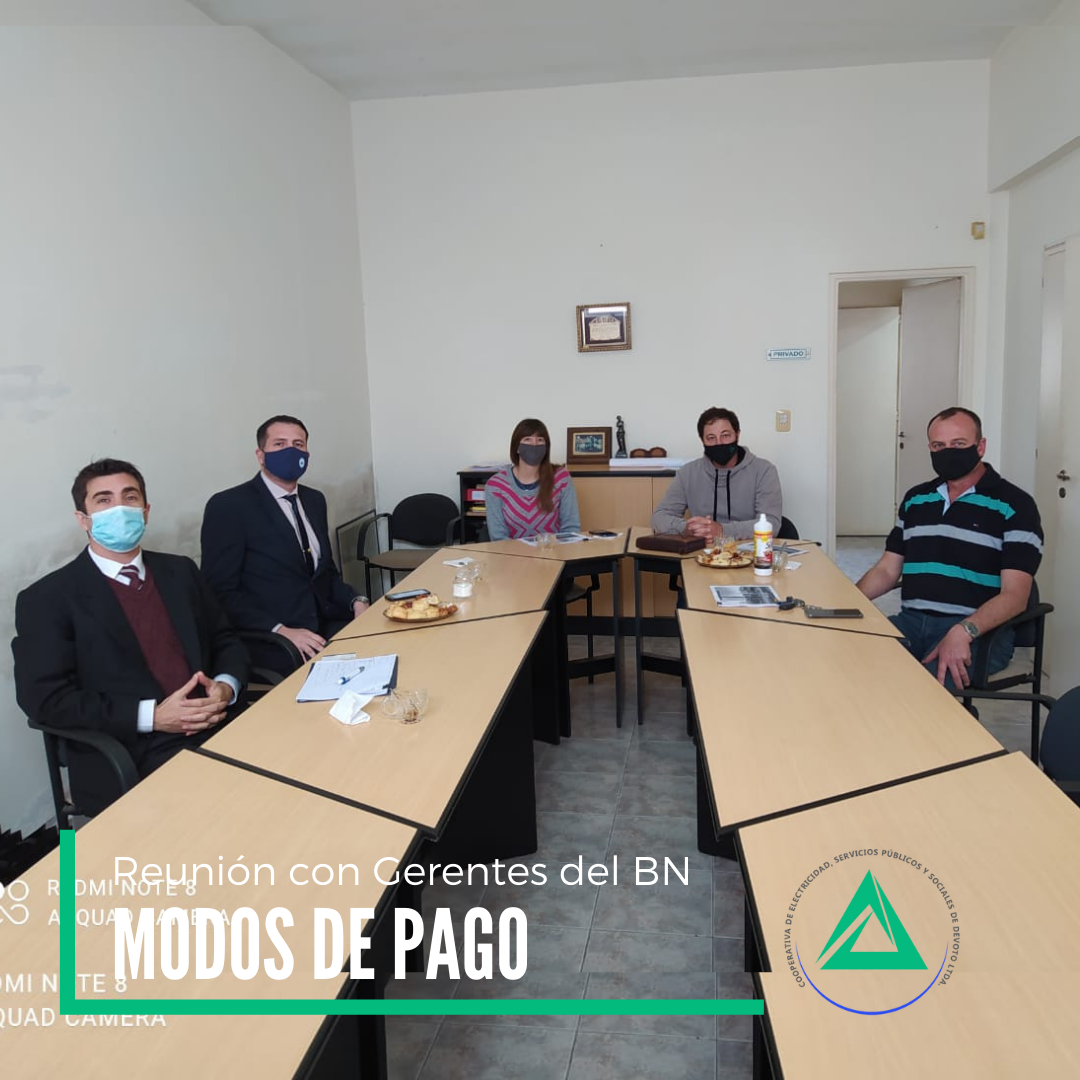 Se concretó hoy en las oficinas de la Cooperativa de Electricidad, Servicios Públicos y Sociales de Devoto una importante reunión entre el Presidente, Dante Brusa, la Contadora Jaqueline Depetris y el Tesorero Fernando Pizzi quienes recibieron al Gerente del Banco Nación de San Francisco y el Gerente Comercial de la entidad.