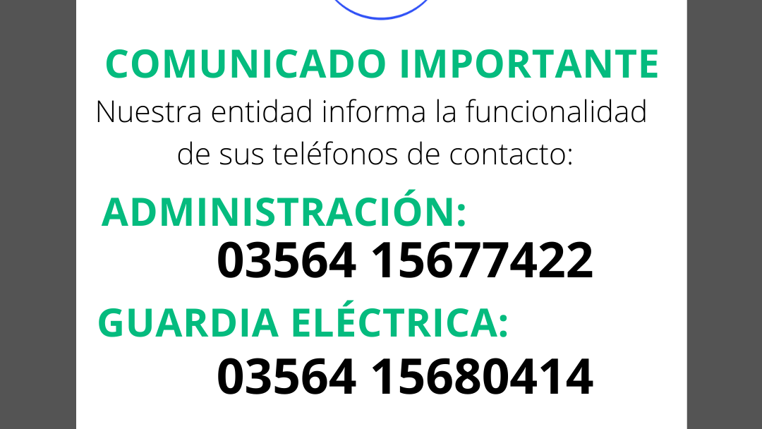 Desde la Cooperativa de Electricidad, Servicios Públicos y Sociales de Devoto se informa y comunica a socios y usuarios cuál es la funcionalidad de cada uno de los medios de contacto directo con nuestro personal, se deberá tener en cuenta esta información para una comunicación directa y efectiva. ADMINISTRACIÓN: (03564)…